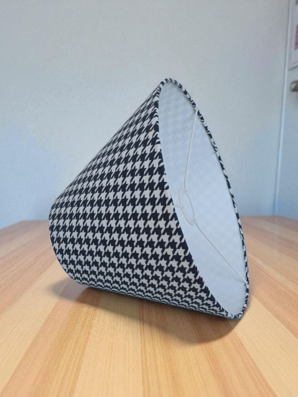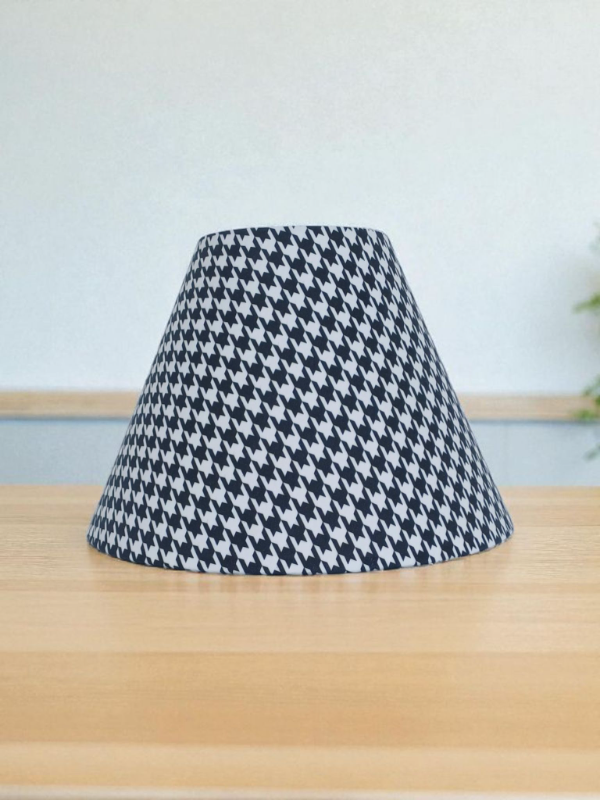 This lampshade is made of high quality linen/cotton fabric with beautiful chanel black and white print and laminated flame retardant clear PVC on the back side.