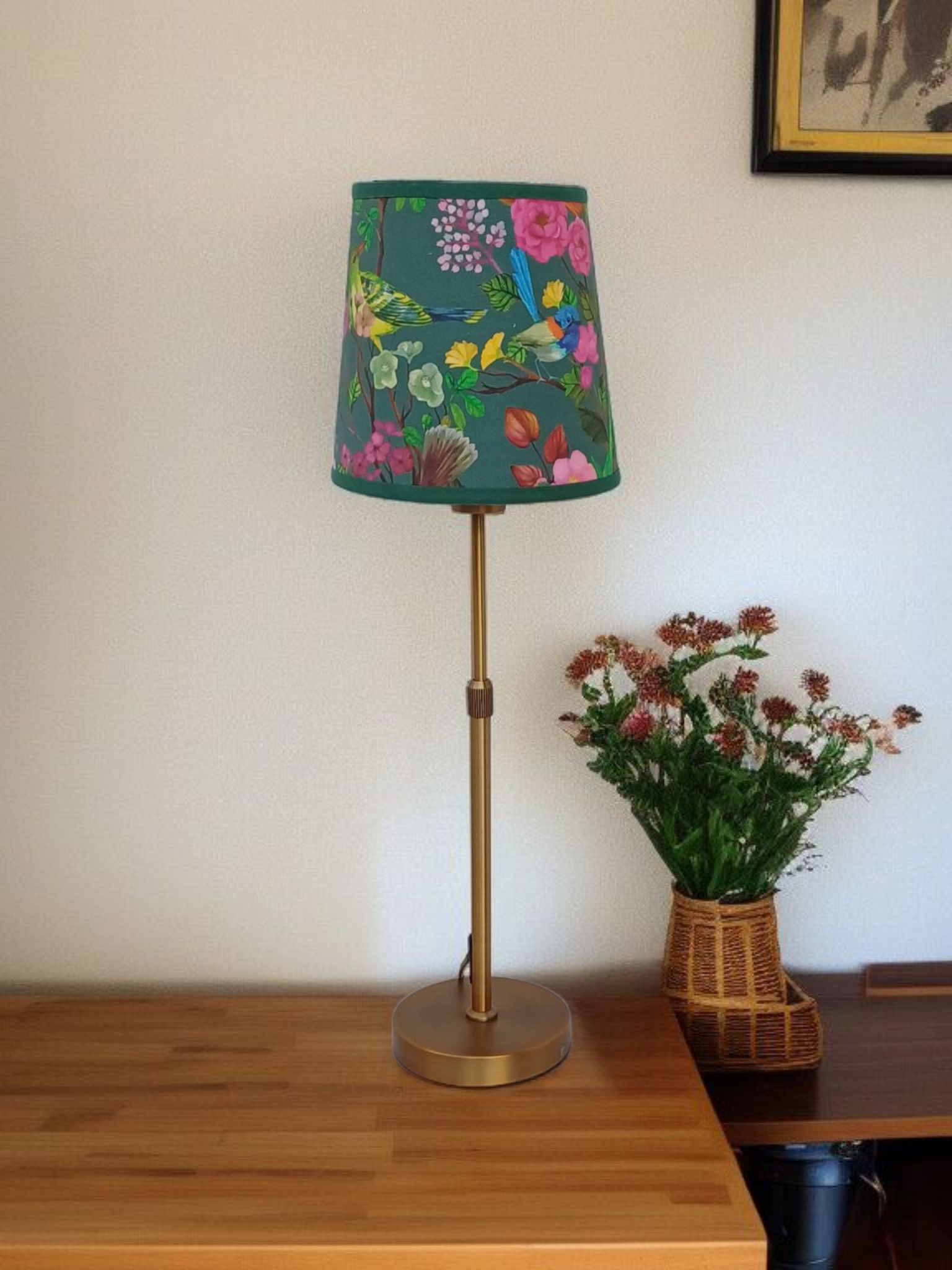 Bring charm and warmth into your home with this beautiful table lamp, featuring a delicate floral and birds patterned shade. When switched on, the soft light shines through the floral design, adding depth, atmosphere, and a serene glow to any room.