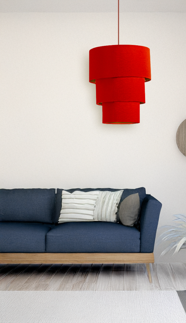 Odinea triple lampshadeThis 3-tier pendant lampshade is made of high quality linen fabric and laminated flame retardant gold PVC on the back side. Lampshade consists of three lampshades in dimension: -50cm diameter / 20″ diameter -40cm diameter / 16″ diameter -30cm diameter/ 12″ diameter